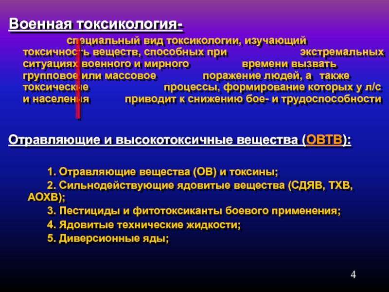 Отравляющие и высокотоксичные вещества (ОВТВ):
