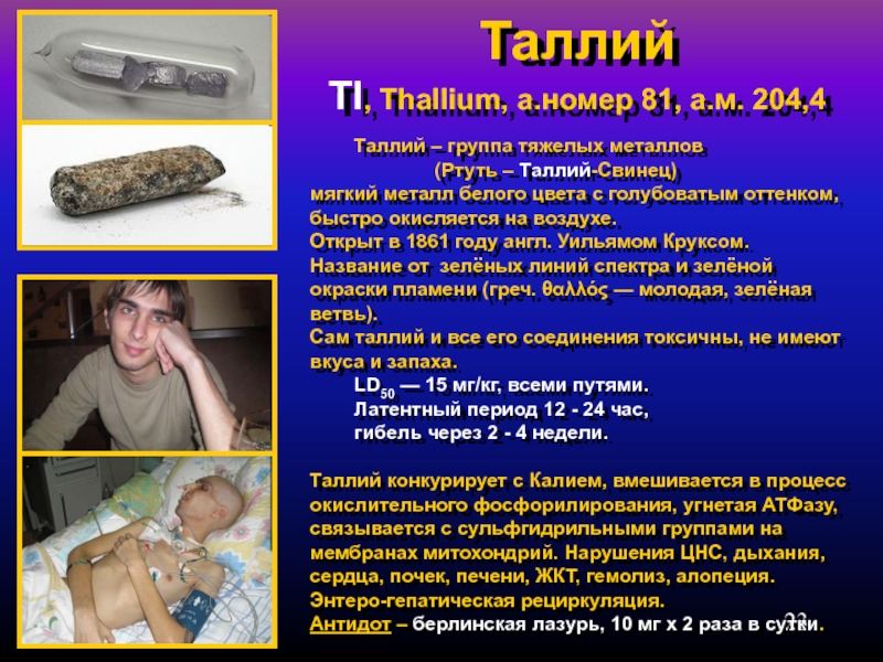 3. Крайне медленнодействующие (скрытый период – сутки, недели): ботулотоксин, рицин, микотоксины, таллий, кадмий, ртутьорганические соединения, диоксины.