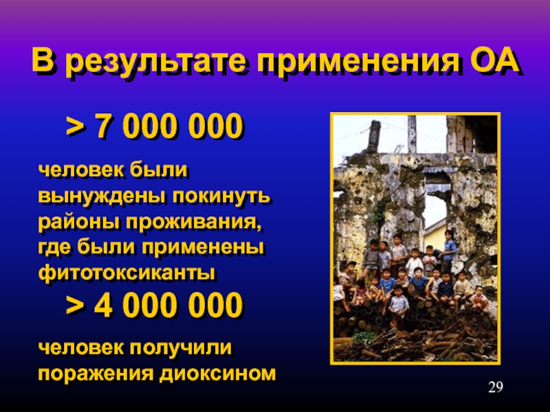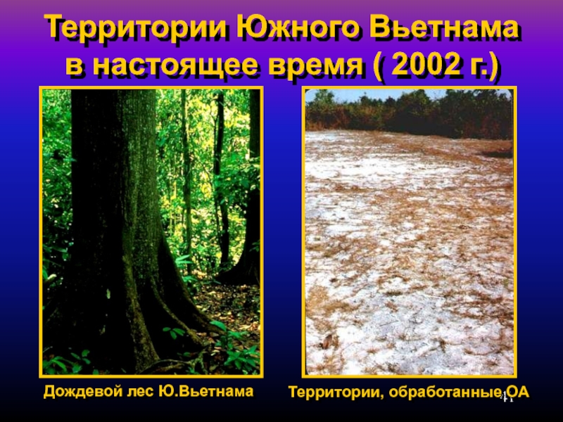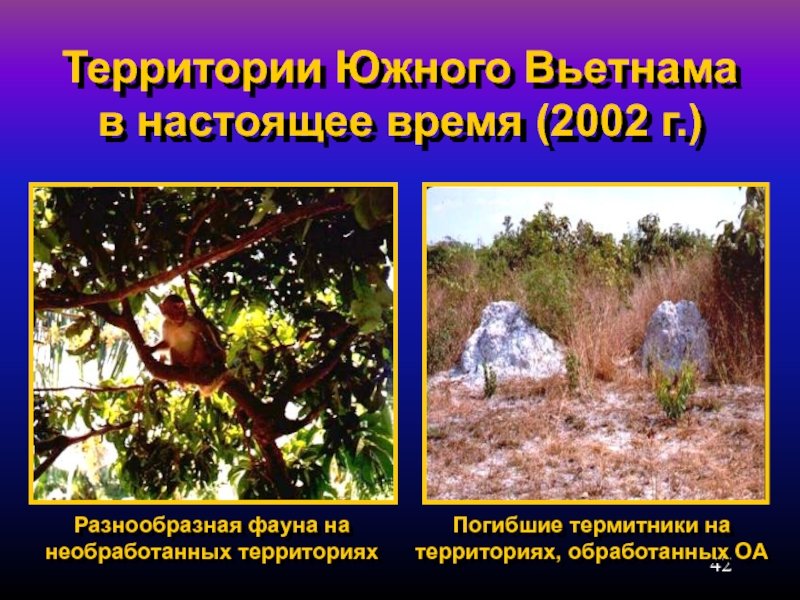 Слайд 43Состояние экологического равновесия на обработанных ОА территориях в настоящее время