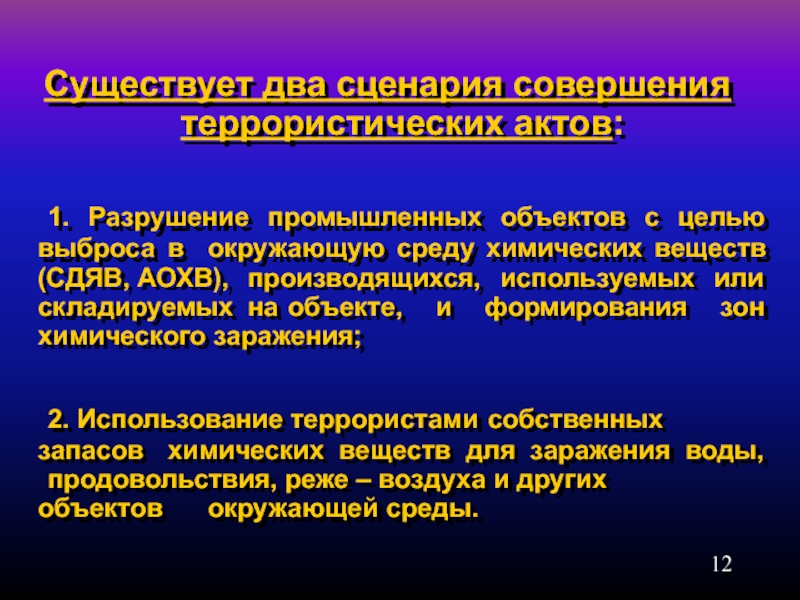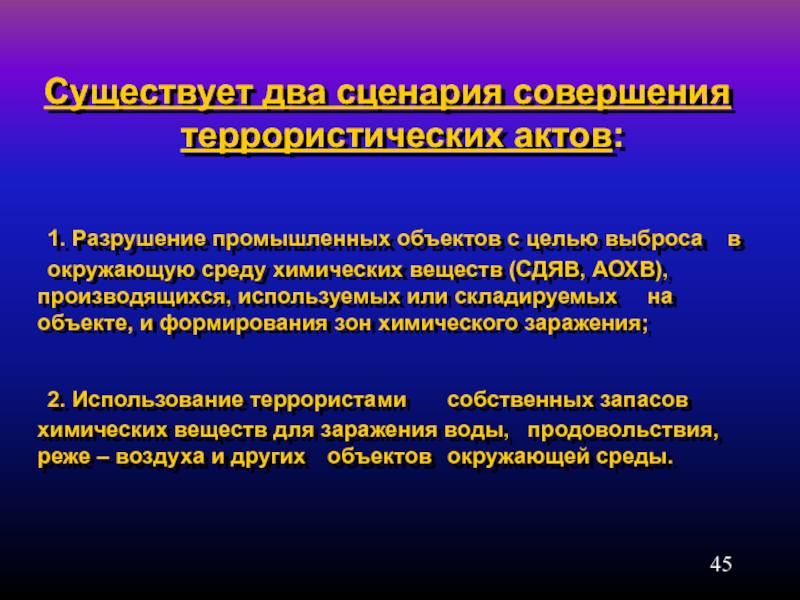 Чрезвычайные ситуации 2-го типа, обусловленные использованием террористами «собственных» запасов высокотоксичных