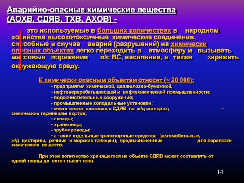 2. Сильнодействующие ядовитые вещества (СДЯВ, ТХВ, АОХВ);