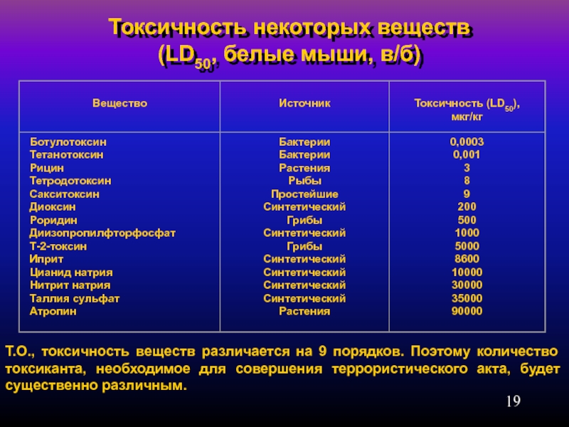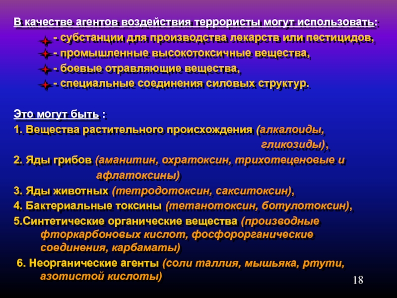 Слайд 8 Токсичные вещества смертельного действия – потенциальные агенты химического терроризма