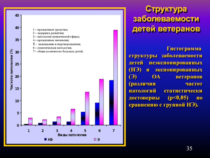 заболеваемости детей неэкспонированных (НЭ) и экспонированных (Э) ОА ветеранов (различия