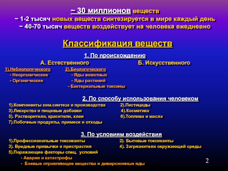 ~ 40-70 тысяч веществ воздействует на человека ежедневно
