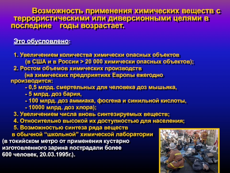 Опасность и сложность чрезвычайных ситуаций, связанных с химическим терроризмом