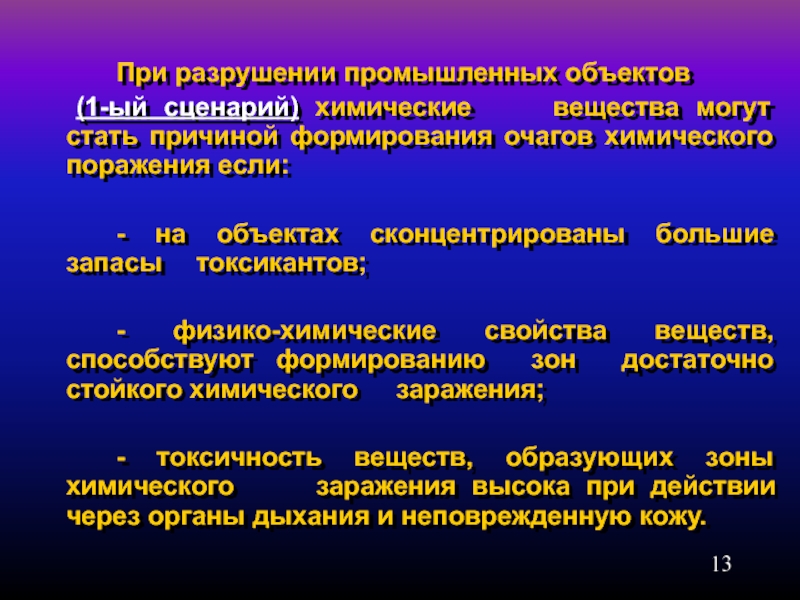 2. Возможностью формирования обширных зон химического заражения территории (в том числе чрезвычайно стойкого - десятилетия);