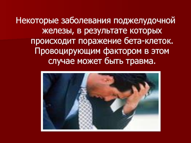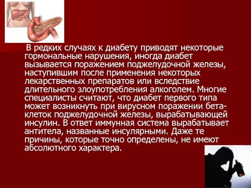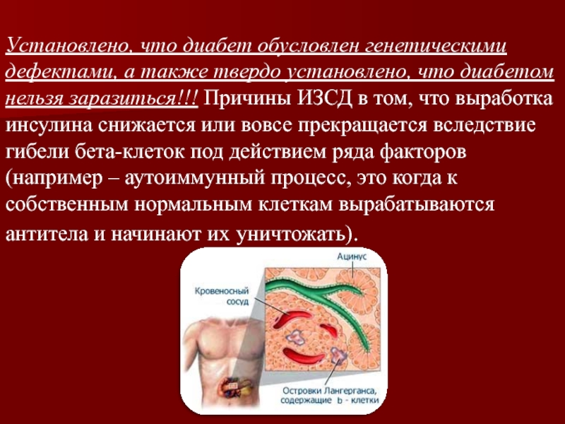дефицитом инсулина, поэтому он называется инсулинозависимым (ИЗСД). Поврежденная поджелудочная железа