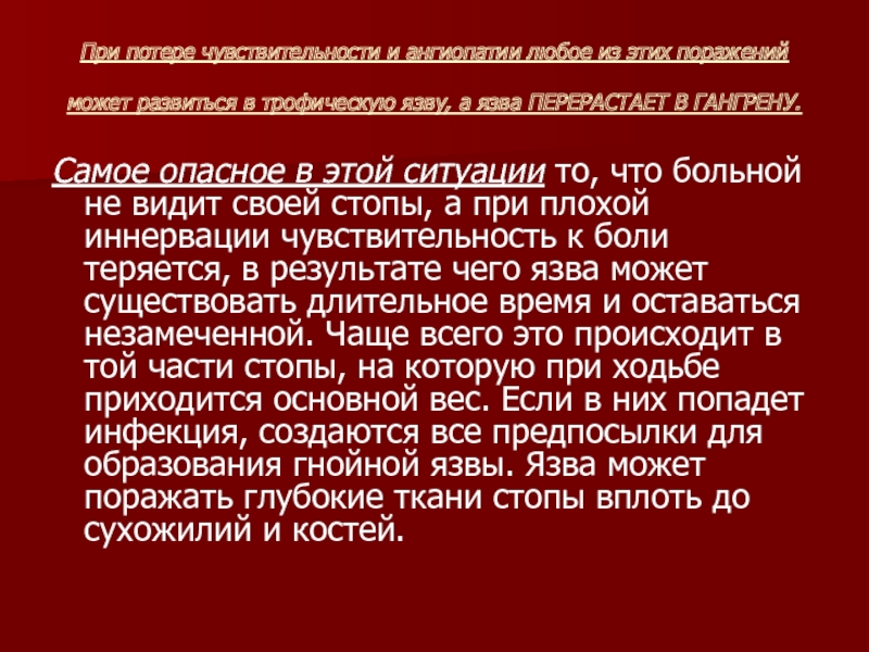 Слайд 54При потере чувствительности и ангиопатии любое из этих поражений может