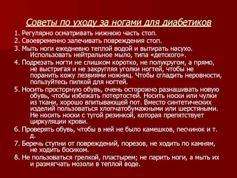 7. Беречь ступни от повреждений, порезов, не ходить по камням, не ходить босиком.