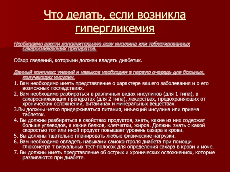 и навыков необходим в первую очередь для больных, получающих инсулин.