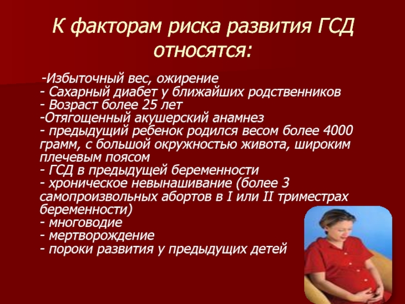 есть перечисленные выше факторы риска ГСД или хотя бы один