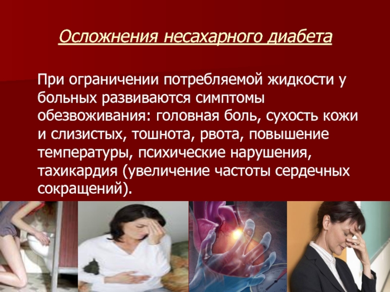 частое мочеиспускание и чувство неутолимой жажды, приводящие к обезвоживанию организма;