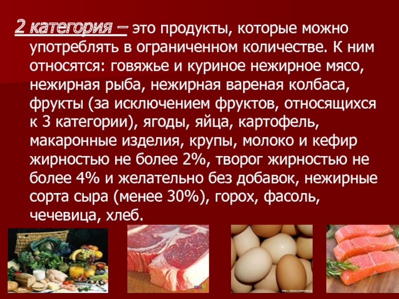 Слайд 642 категория – это продукты, которые можно употреблять в ограниченном