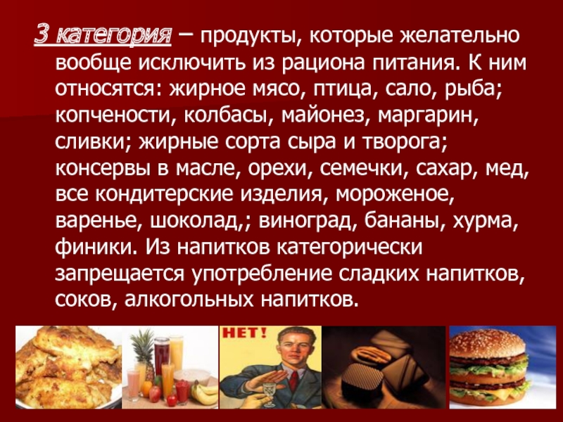 Слайд 653 категория – продукты, которые желательно вообще исключить из рациона