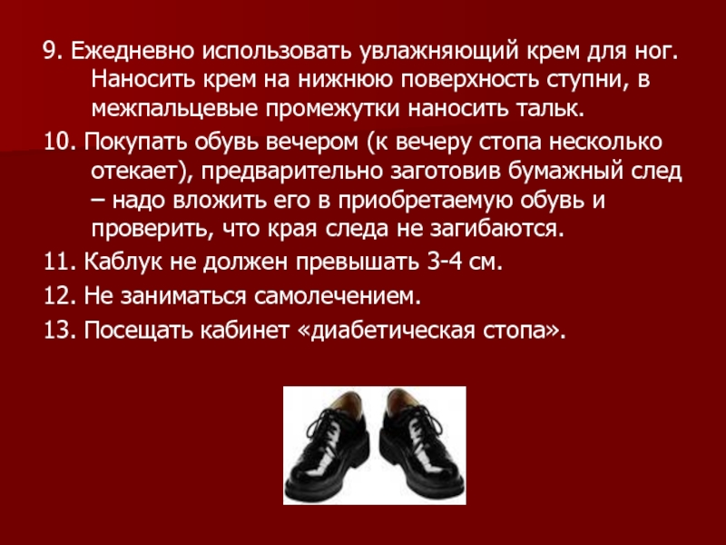 Слайд 619. Ежедневно использовать увлажняющий крем для ног. Наносить крем на