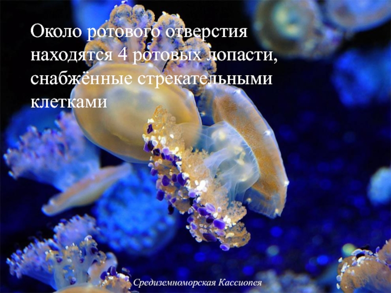 Средиземноморская КассиопеяОколо ротового отверстия находятся 4 ротовых лопасти, снабжённые стрекательными клетками