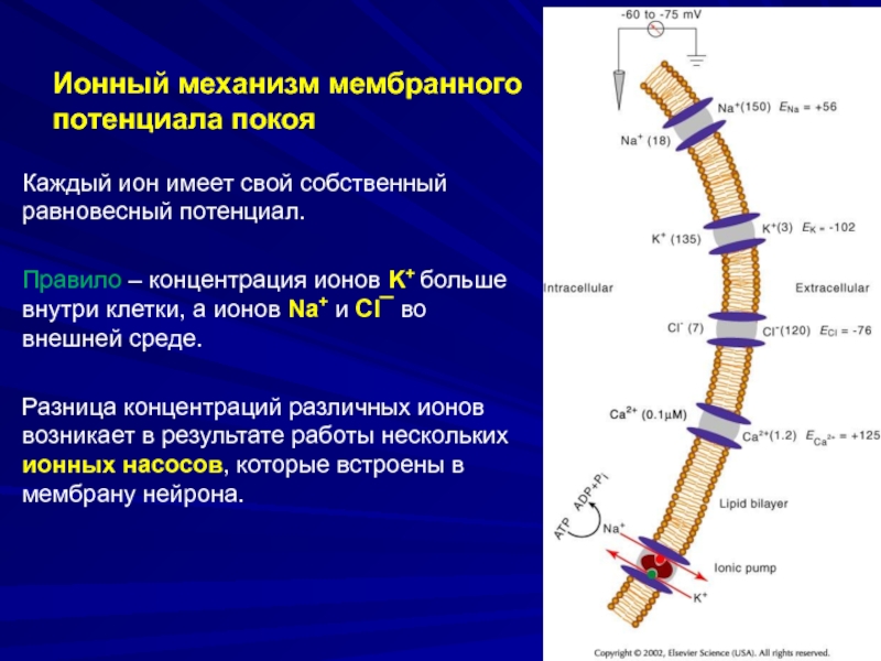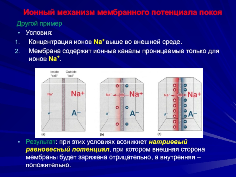 Слайд 20Ионный механизм мембранного потенциала покоя