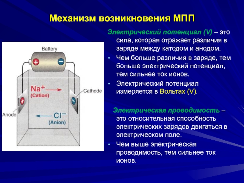 различия в заряде, тем больше электрический потенциал, тем сильнее ток ионов.