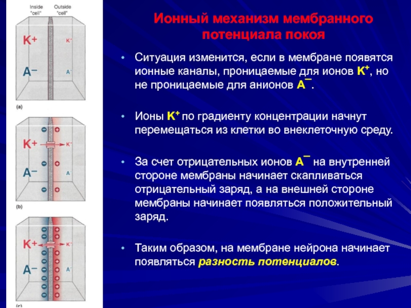Слайд 27Ионный механизм мембранного потенциала покоя
