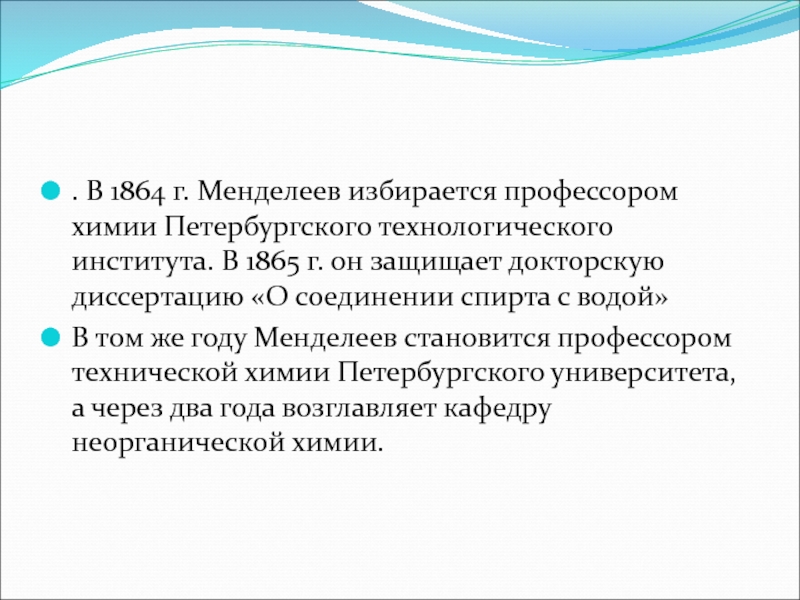 Слайд 7. В 1864 г. Менделеев избирается профессором химии Петербургского технологического