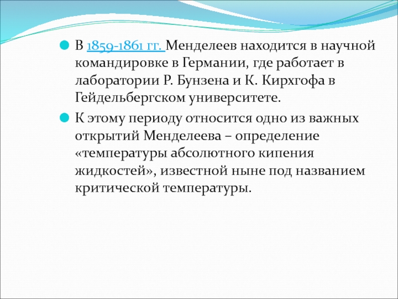 Слайд 4В 1859-1861 гг. Менделеев находится в научной командировке в Германии,