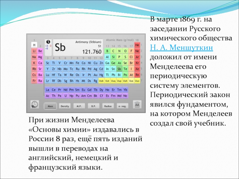 доложил от имени Менделеева его периодическую систему элементов. Периодический закон