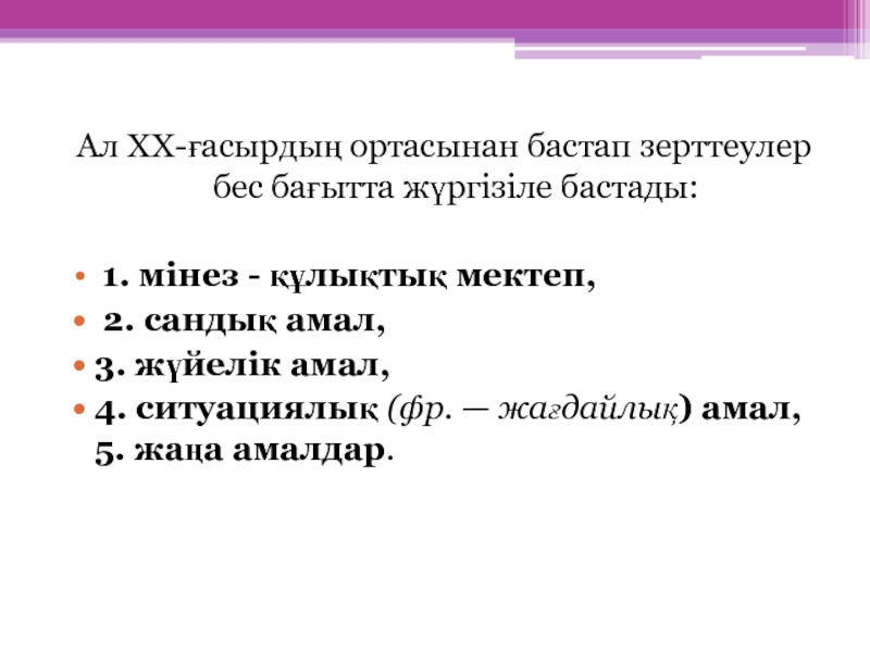 Слайд 8Ал ХХ-ғасырдың ортасынан бастап зерттеулер бес бағытта жүргізіле бастады: