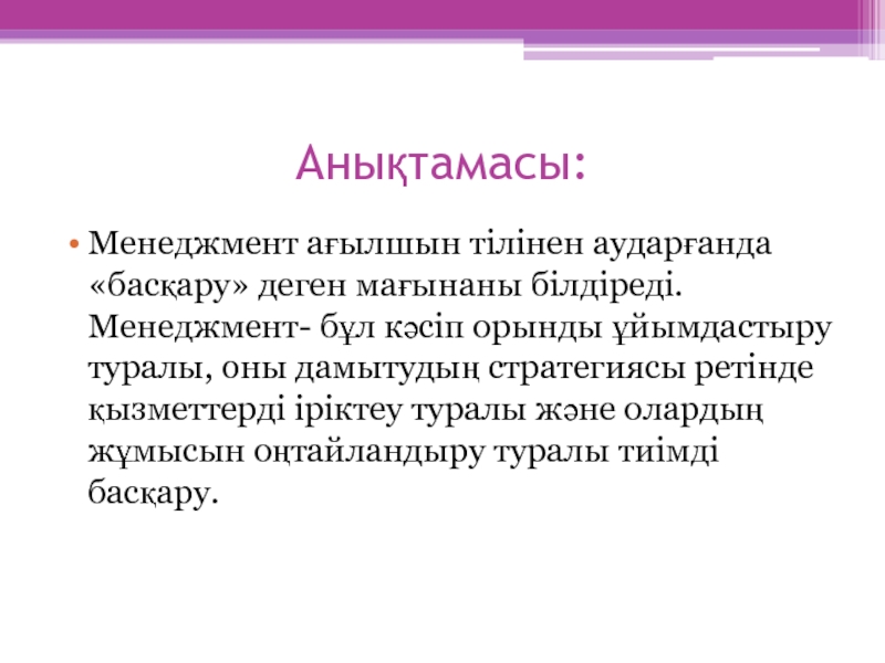 Менеджмент ағылшын тілінен аударғанда «басқару» деген мағынаны білдіреді. Менеджмент- бұл