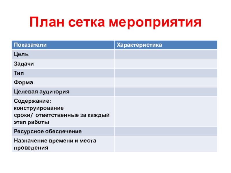 План сетка мероприятия