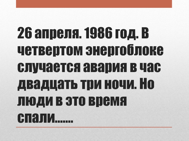 Слайд 5Первое сообщение об аварии на Чернобыльской АЭС появилось в советских