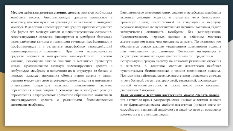 их ускоряется псевдохолинэстеразой. Анестетики этой группы действуют коротко.