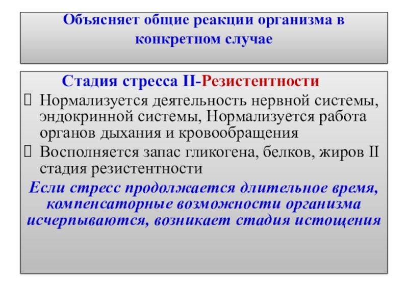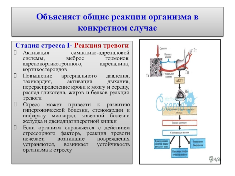 Слайд 8Объясняет общие реакции организма в конкретном случае