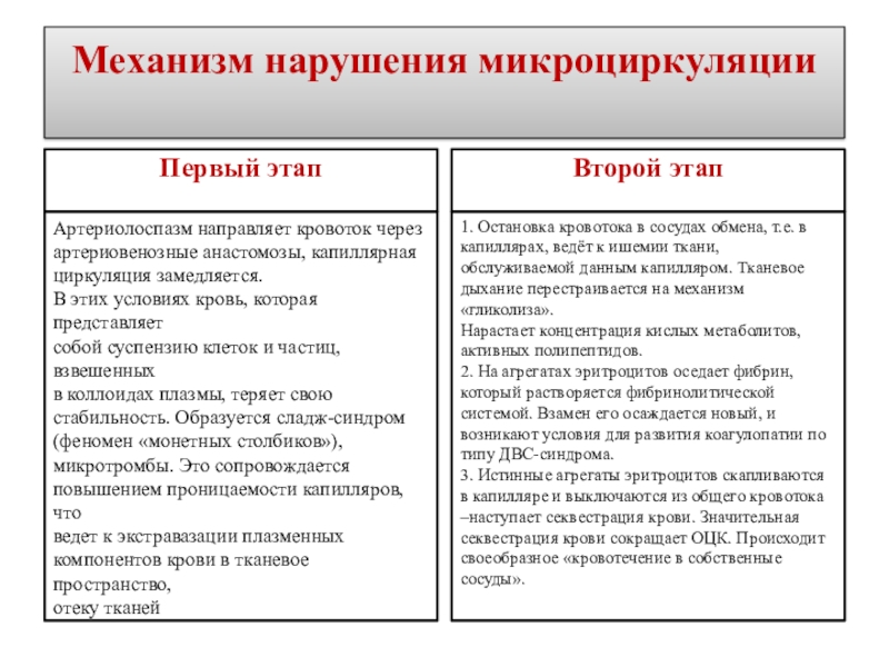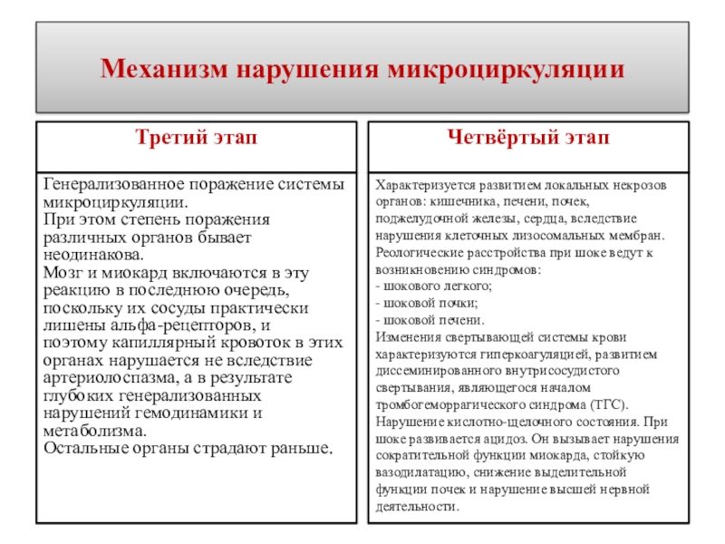 центра → несоответствие между емкостью сосудов и объемом циркулирующей крови → децентрализация кровообращения.