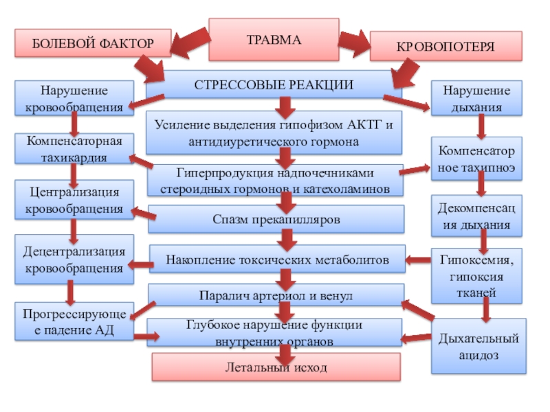 Активация симпатико-адреналовой системы, выброс гормонов: адренокортикотропного, адреналина, кортикостероидов