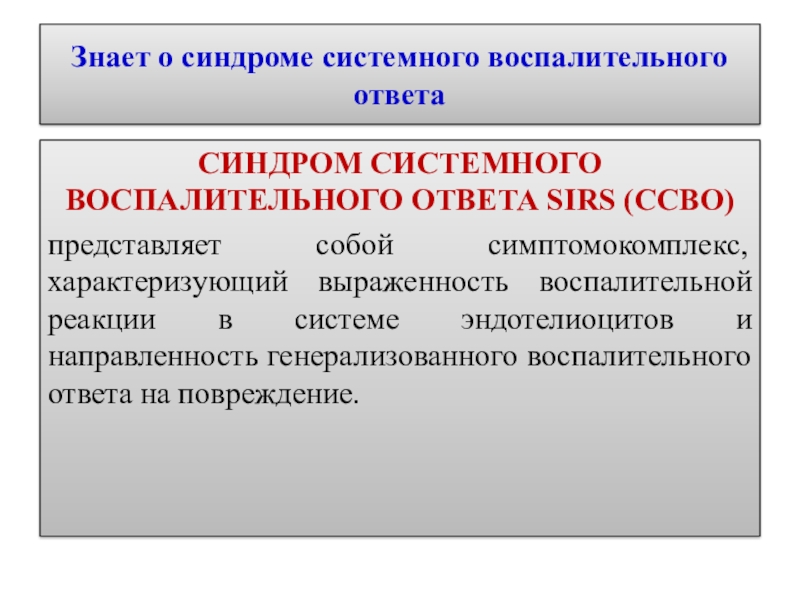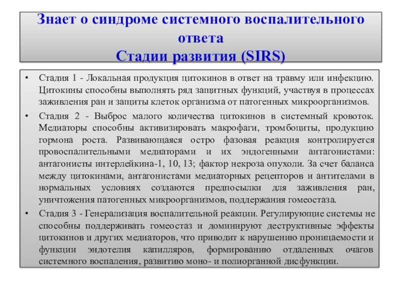 Слайд 20Знает о синдроме системного воспалительного ответа