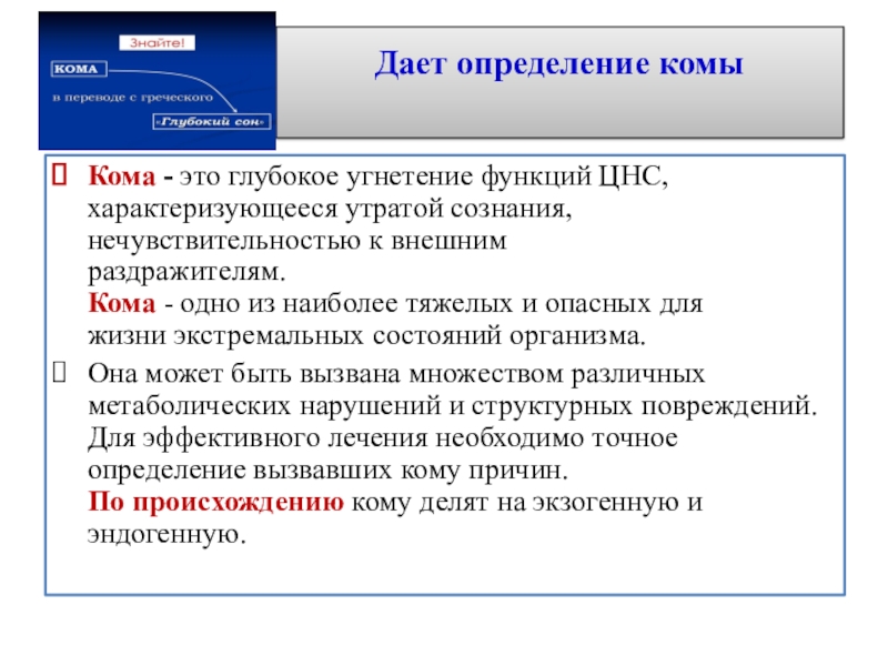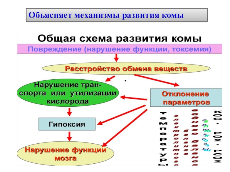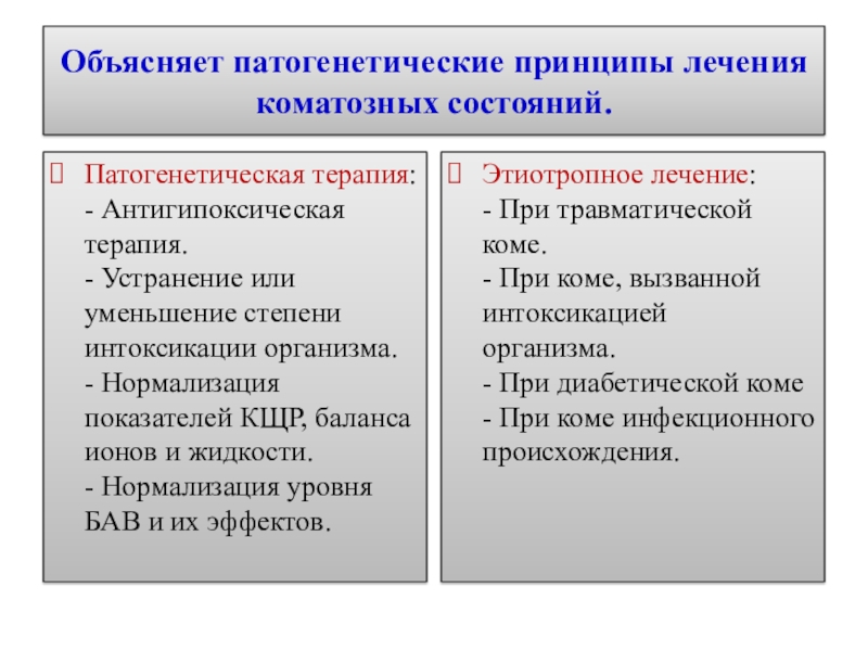 Слайд 39Объясняет патогенетические принципы лечения коматозных состояний.