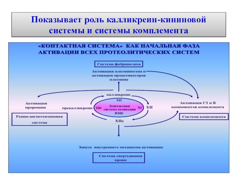 относятся системы комплемента, калликреин-кининовая, а также фибринолитическая и свертывания крови.