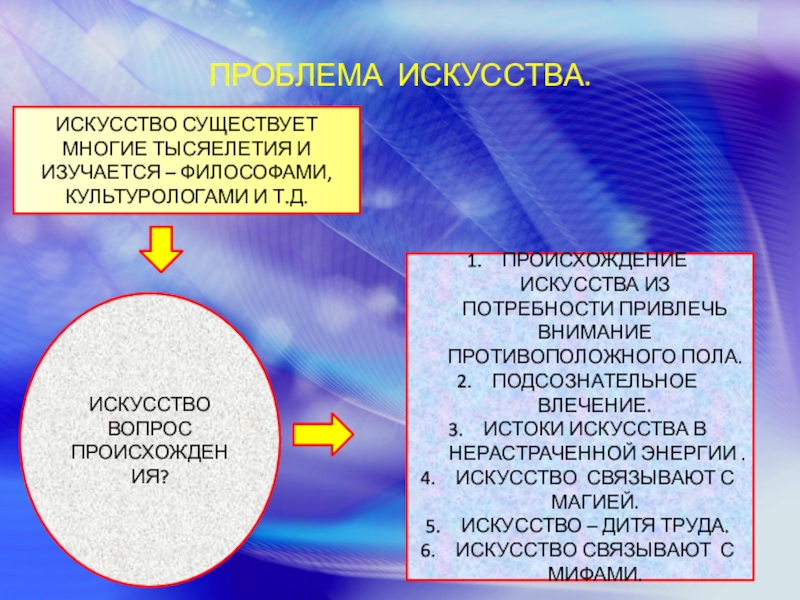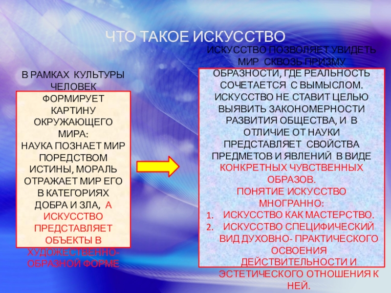 ИСКУССТВО СПЕЦИФИЧЕСКИЙ ВИД ДУХОВНО- ПРАКТИЧЕСКОГО ОСВОЕНИЯ ДЕЙСТВИТЕЛЬНОСТИ И ЭСТЕТИЧЕСКОГО ОТНОШЕНИЯ К НЕЙ.