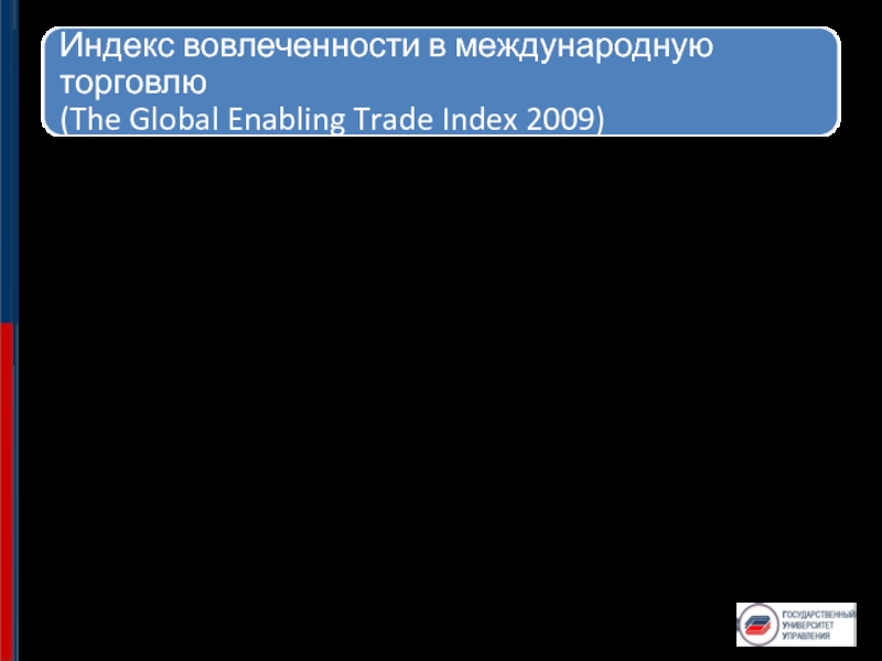 Слайд 18Исследование вовлеченности стран в международную торговлю измеряет эффективность работы различных