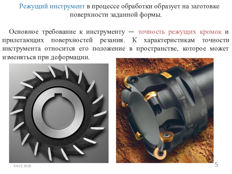 Слайд 5Режущий инструмент в процессе обработки образует на заготовке поверхности заданной