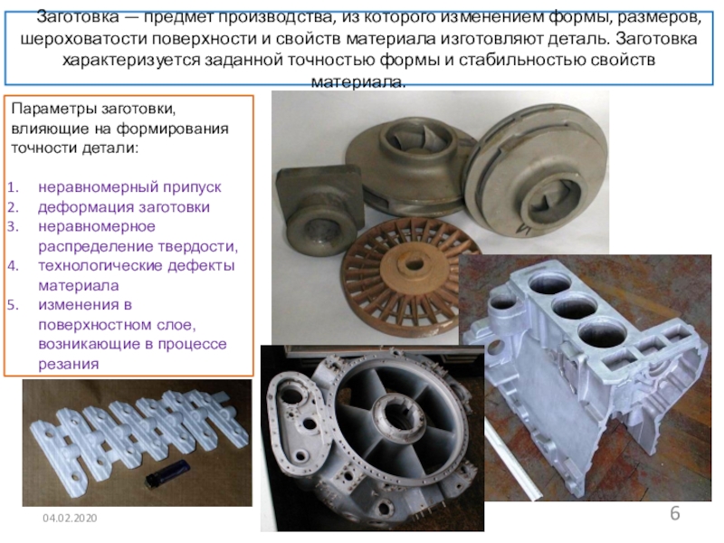 поверхности и свойств материала изготовляют деталь. Заготовка характеризуется заданной точностью