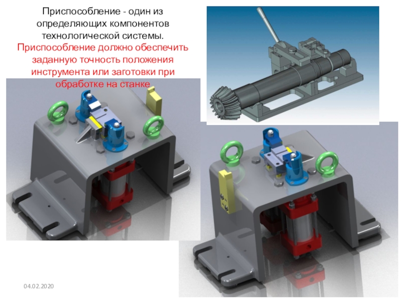 Слайд 4Приспособление - один из определяющих компонентов технологической системы. Приспособление должно