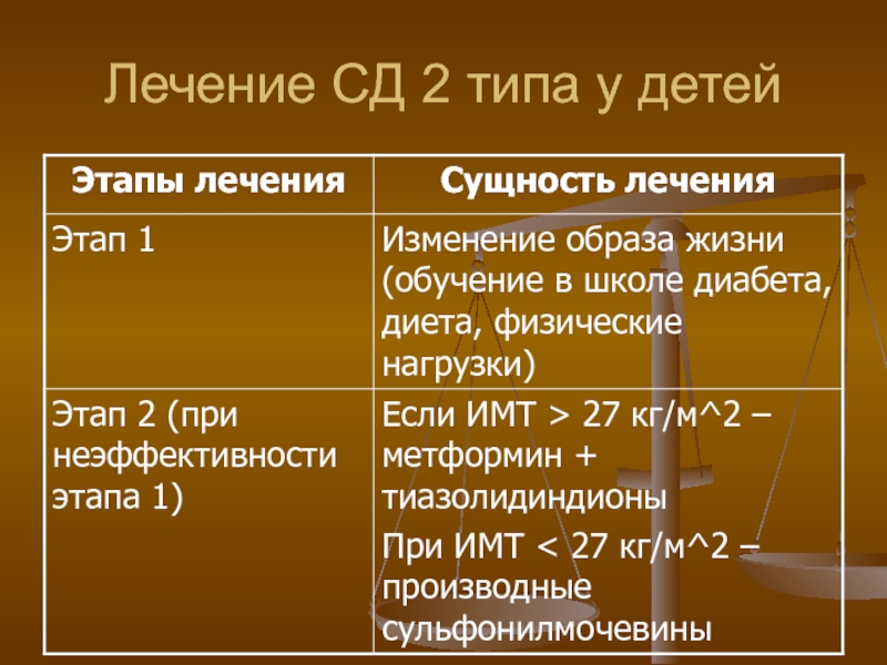 Слайд 37Лечение СД 2 типа у детей