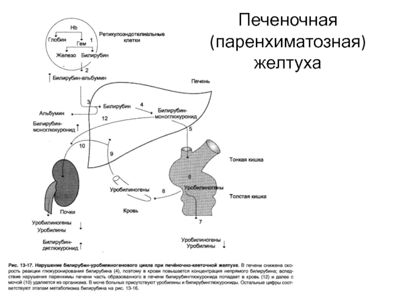 Слайд 34Печеночная (паренхиматозная) желтуха