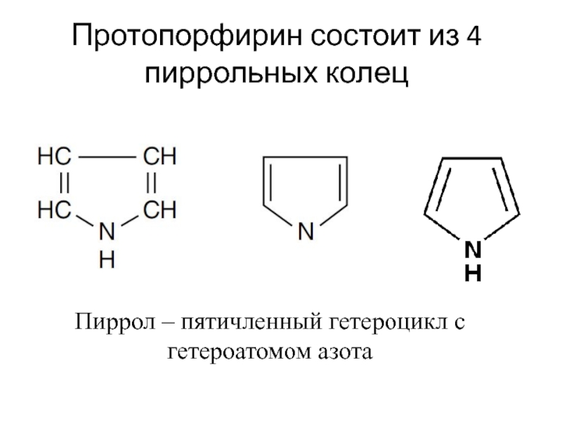 Слайд 6Протопорфирин состоит из 4 пиррольных колец