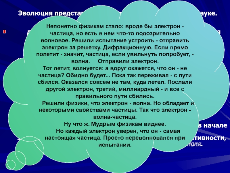Тот летит, волнуется: а вдруг окажется, что он - не частица? Обидно будет... Пока так переживал - с пути сбился. Оказался совсем не там, куда летел. Послали другой электрон, третий, миллиардный - и все с правильного пути сбились.