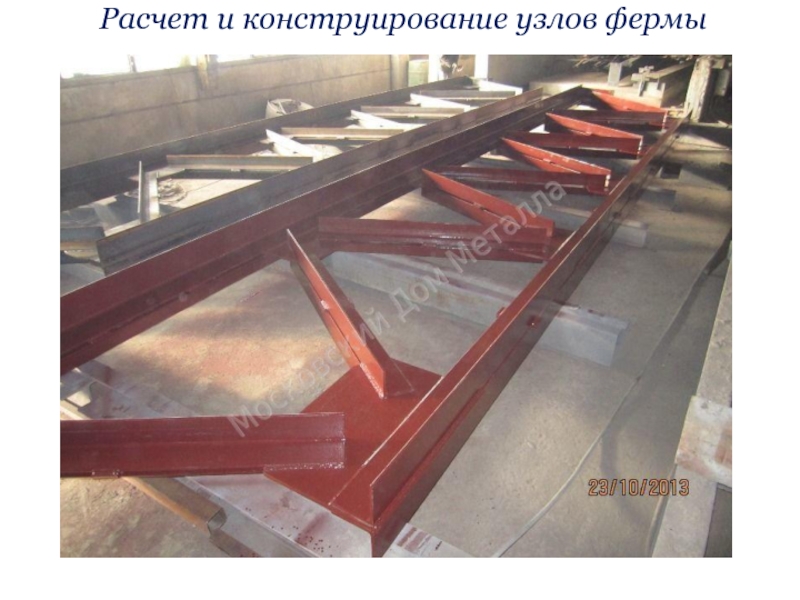 Узлы заводского изготовленияСоединение элементов фермы в узлах происходит путем приварки уголков к пластинам, которые называются фасонками.При таком