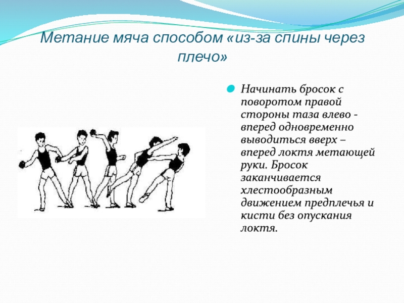 и высоты, на которой мяч покидает руку в момент вылета. Скорость полета зависит от величины силы, приложенной к мячу, длины пути воздействие силы на снаряд.Результат в метании мяча зависит от скоростно-силовой и технической подготовки учащихся.