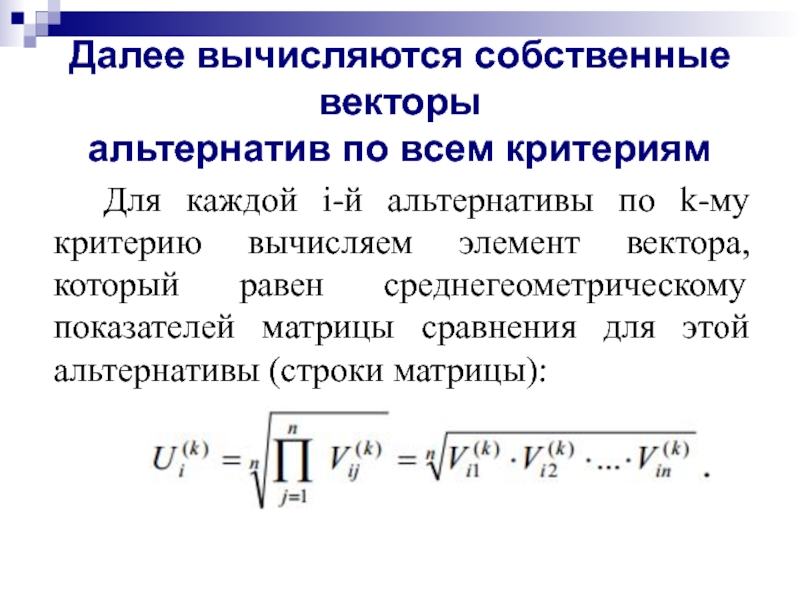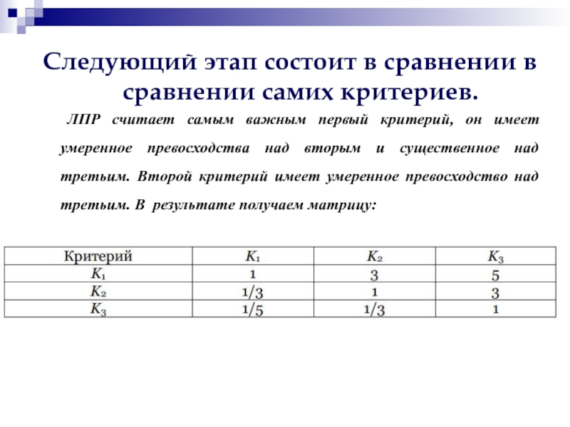 В результате становится возможным получение численных оценок интенсивности взаимовлияния элементов иерархии, на основе которых оцениваются степени предпочтительности альтернатив относительно главной цели.