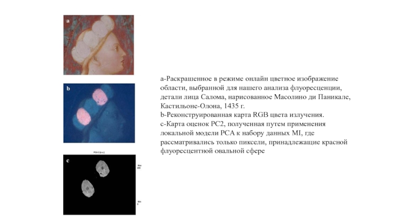 Нормализованные спектры флуоресценции трех образцов: гипса G, казеината кальция CC и поливинилацетата PVA. Каждый амплитудный спектр был нормализован до своего пикового значения.